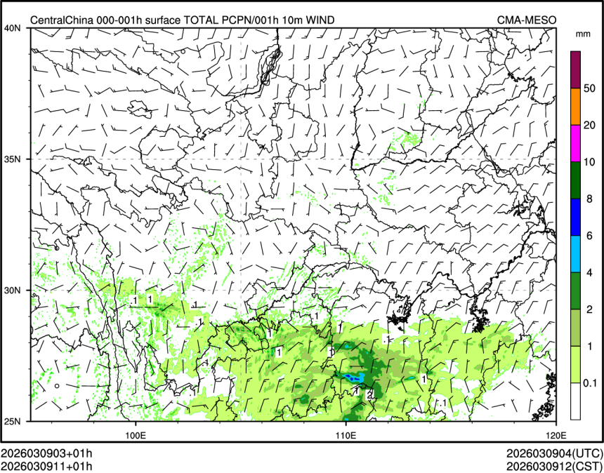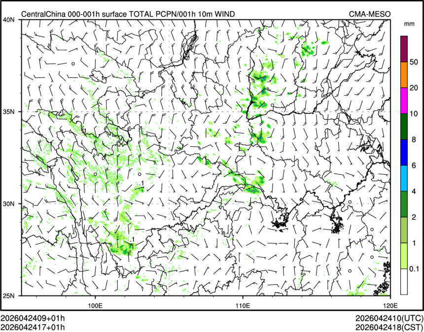 1h降水+10m风场
