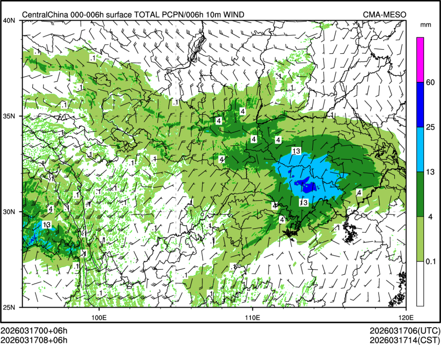 1h降水+10m风场