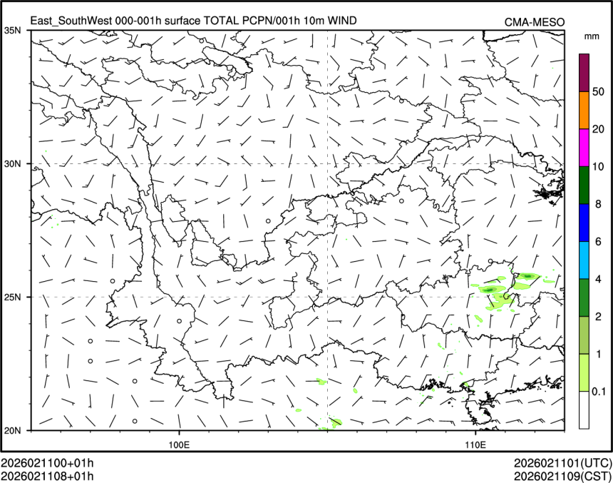 1h降水+10m风场
