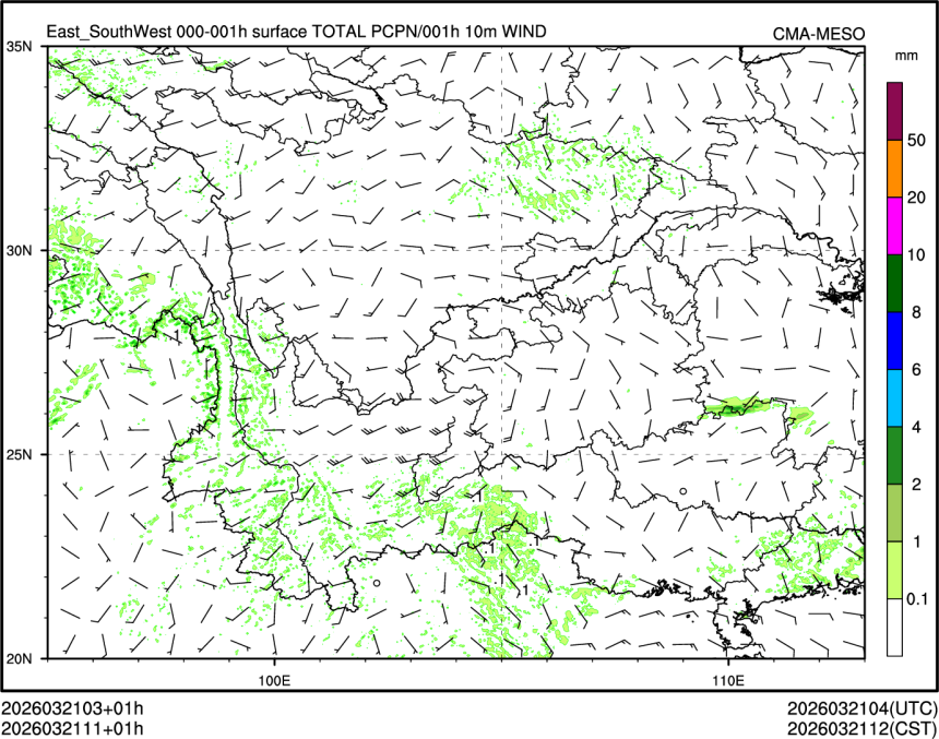 1h降水+10m风场