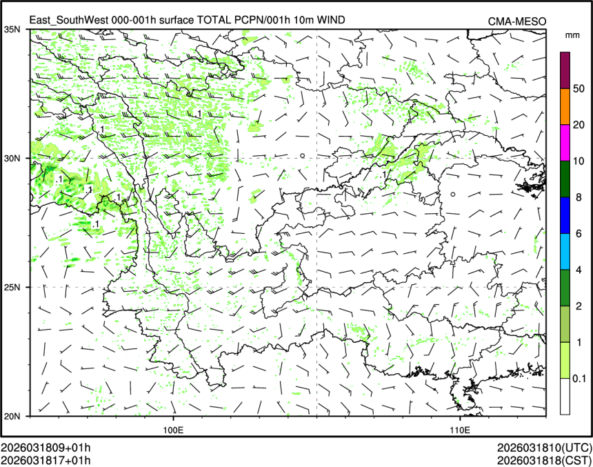 1h降水+10m风场
