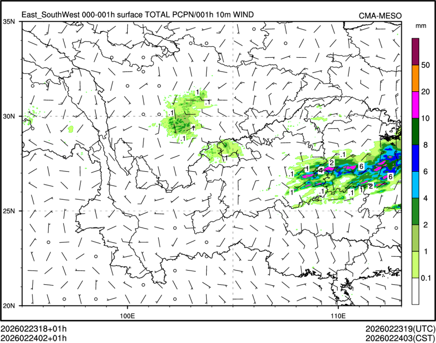 1h降水+10m风场