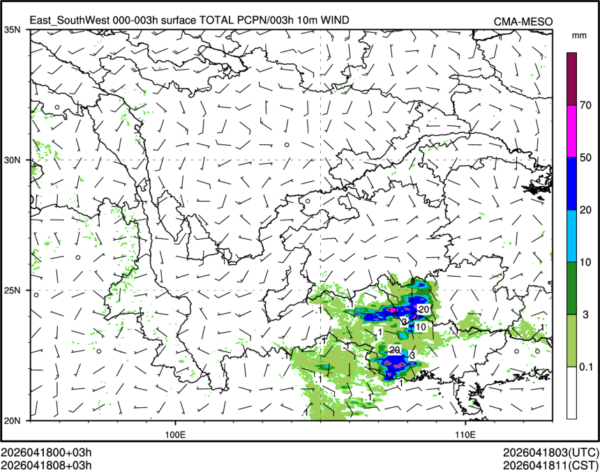 1h降水+10m风场