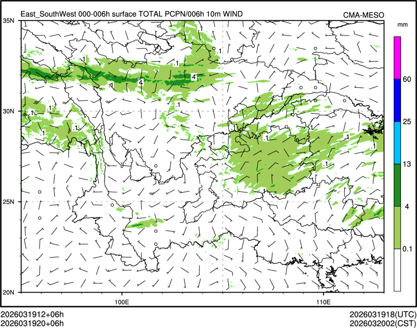 1h降水+10m风场