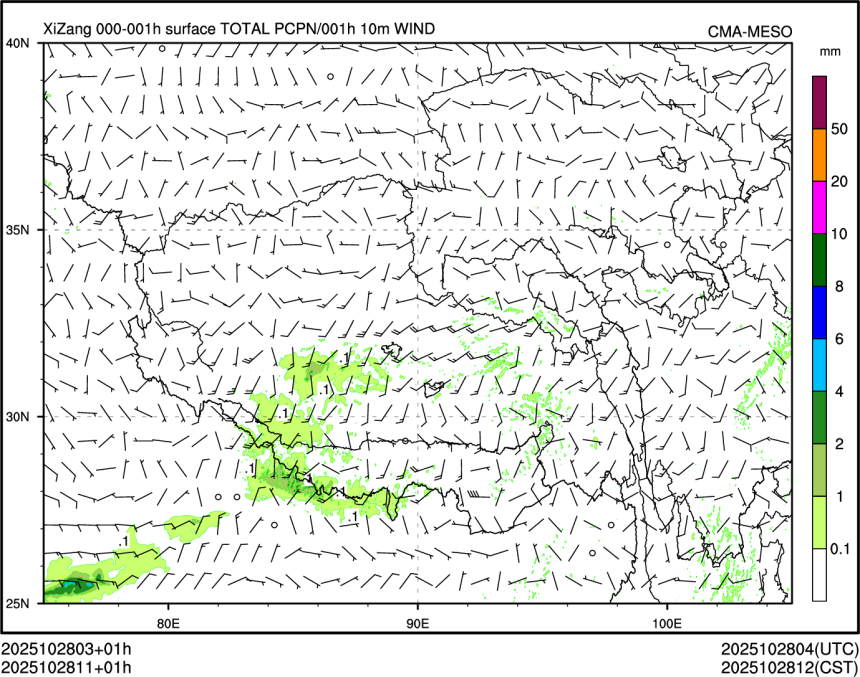 1h降水+10m风场