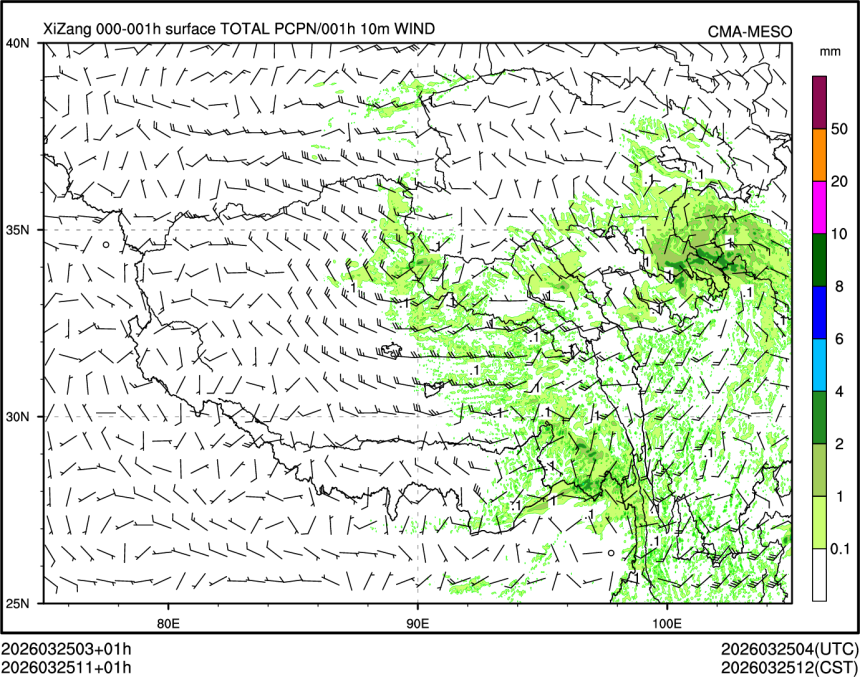 1h降水+10m风场