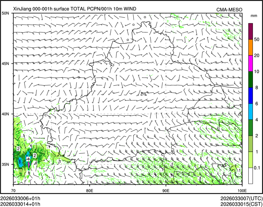 1h降水+10m风场