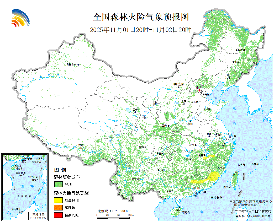 中国气象局公共气象服务中心(国家预警信息发布中心)11月1日18时发布森林火险气象预报