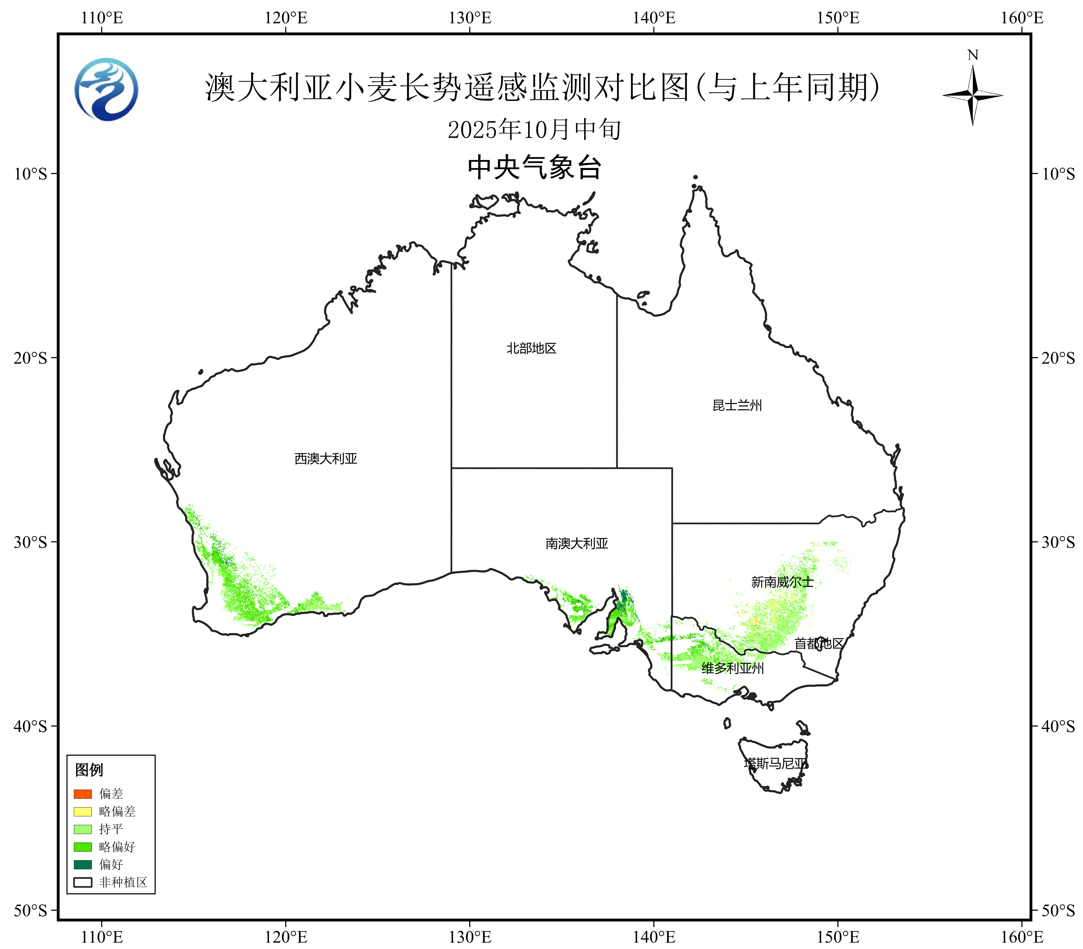 图15 2025年10月中旬澳大利亚小麦长势遥感监测