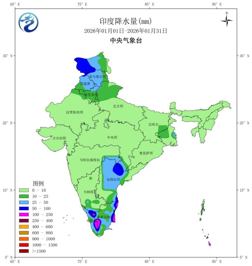 图12 2026年1月印度降水量