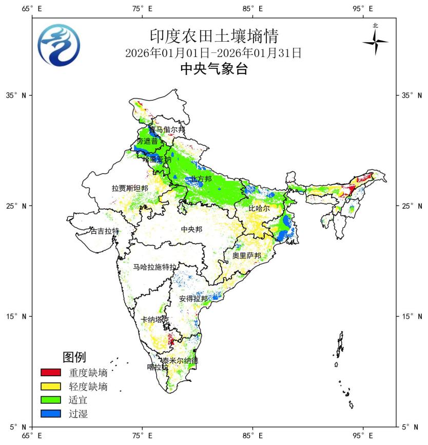 图13 2026年1月印度土壤墒情