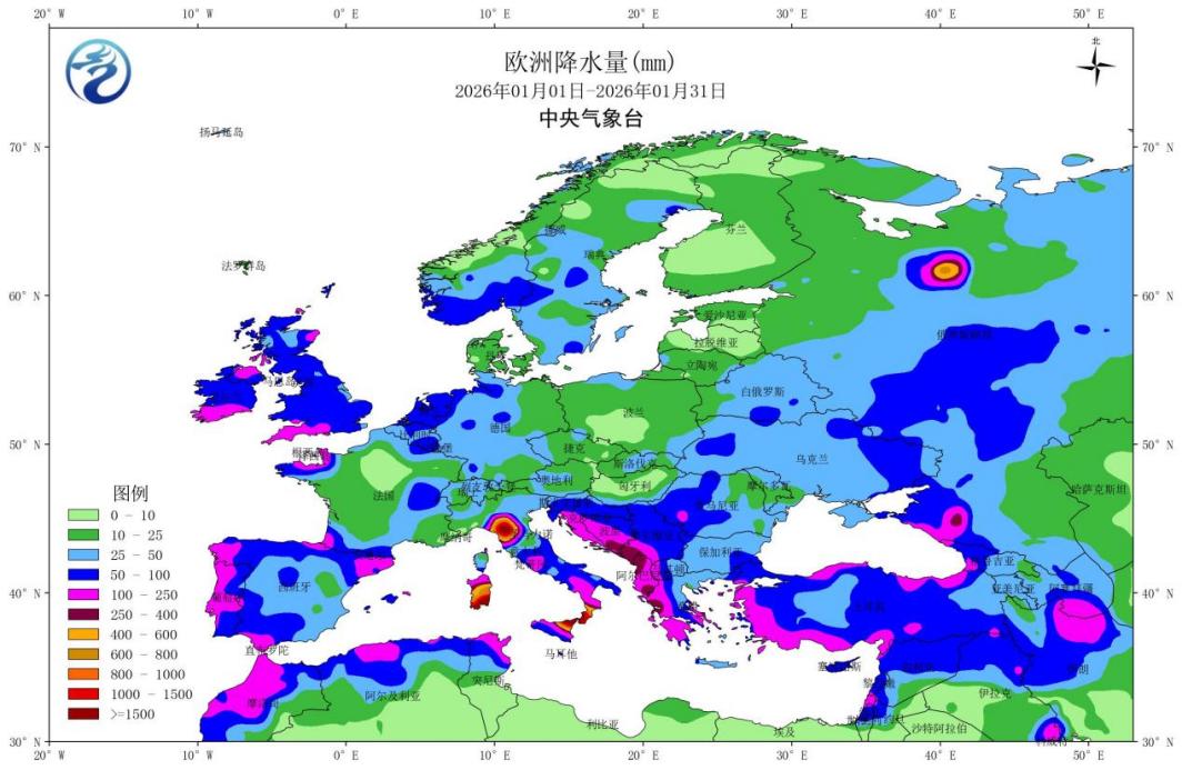 图15 2026年1月欧洲降水量