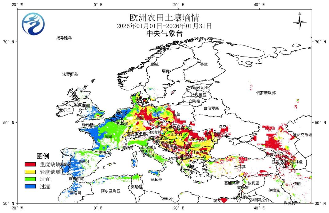 图16 2026年1月欧洲土壤墒情