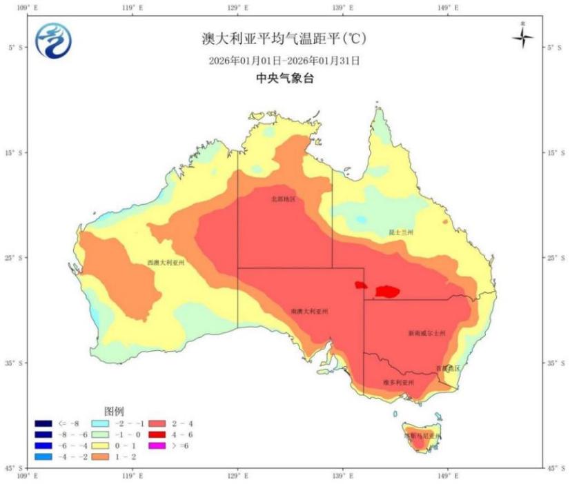 图17 2026年1月澳大利亚平均气温距平
