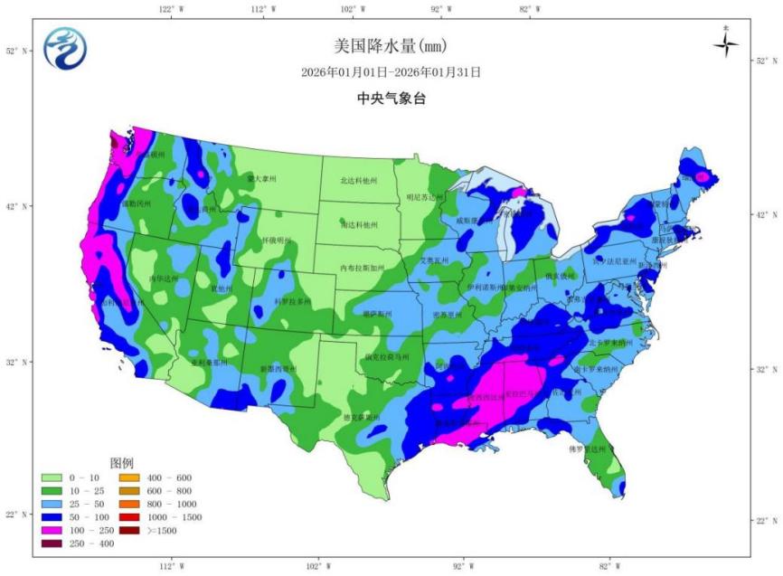 图2 2026年1月美国降水量