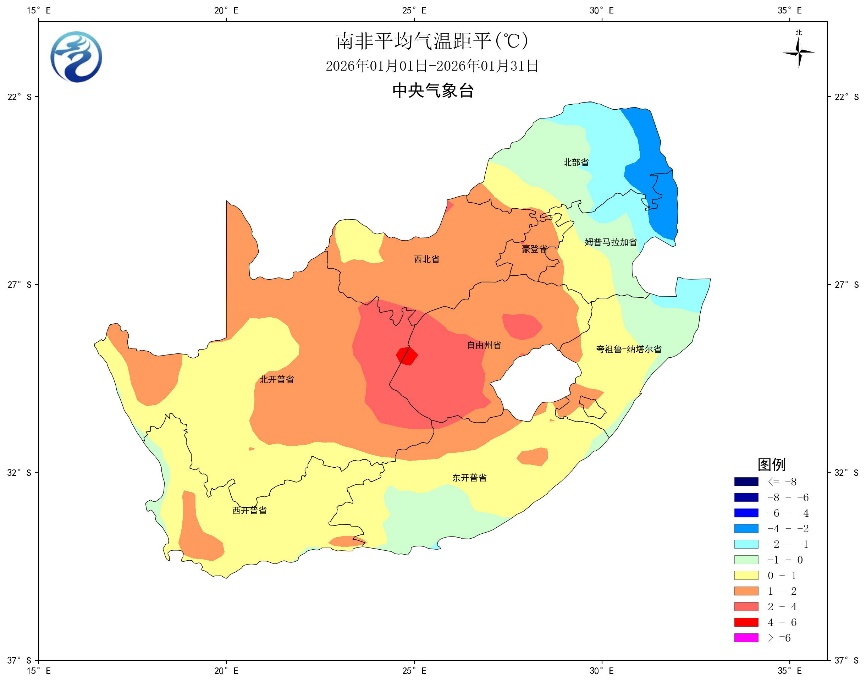 图20 2026年1月南非平均气温距平