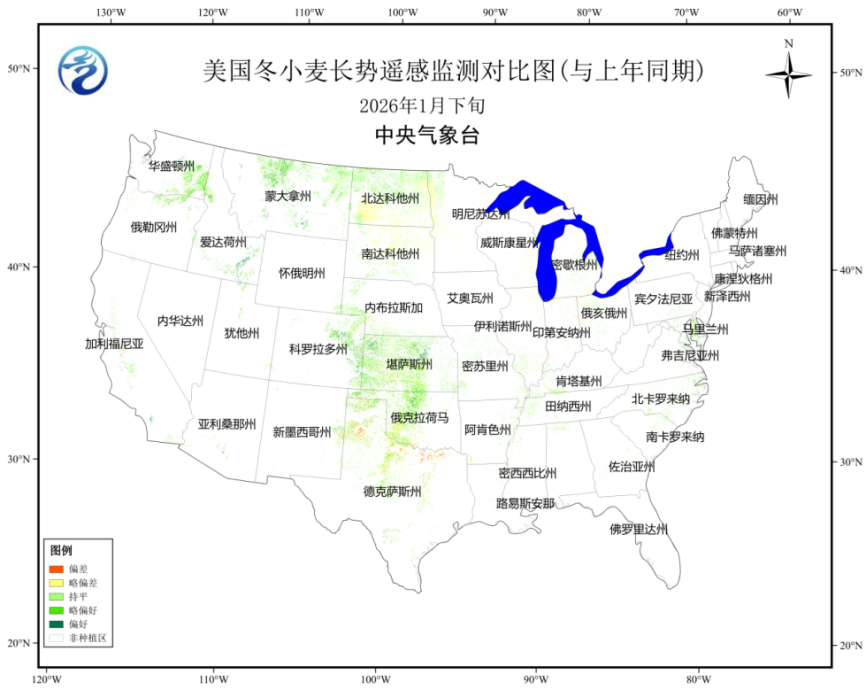 图23 2026年1月下旬美国冬小麦长势遥感监测