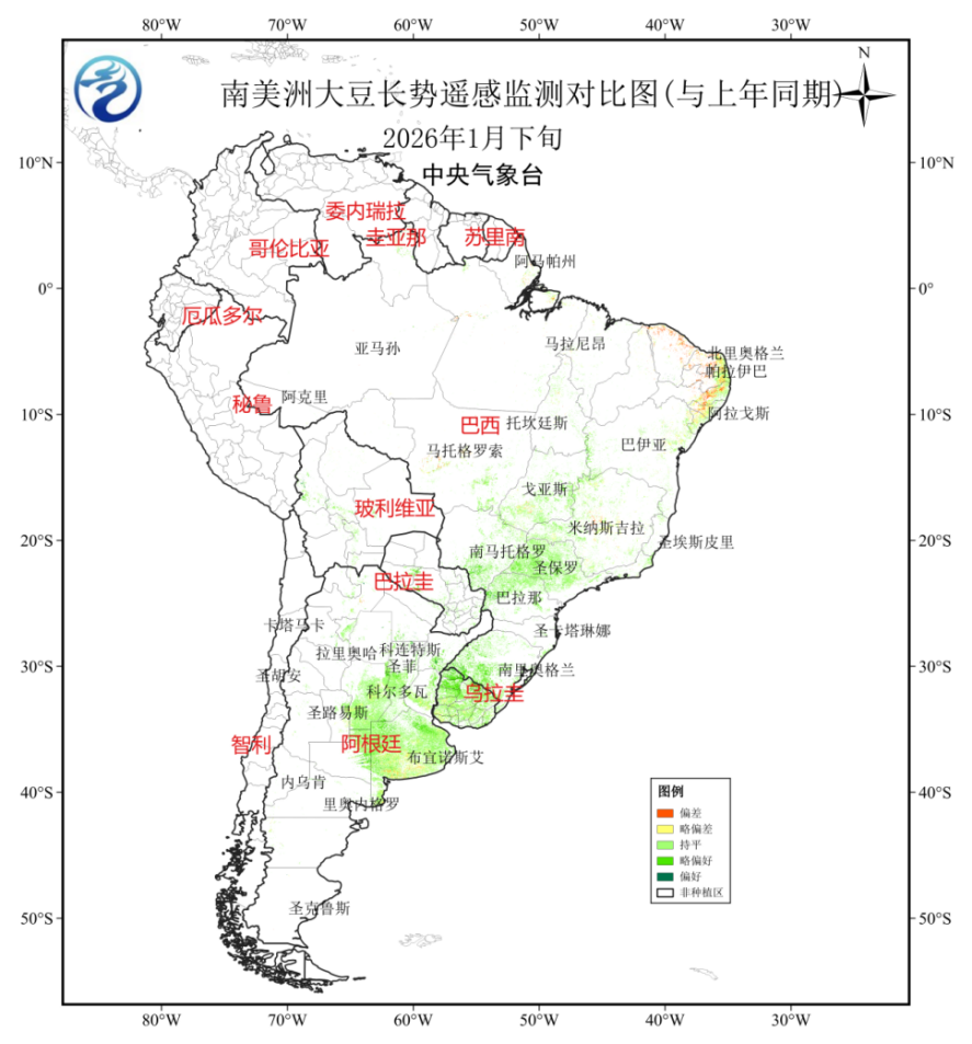 图24 2026年1月下旬南美大豆长势遥感监测