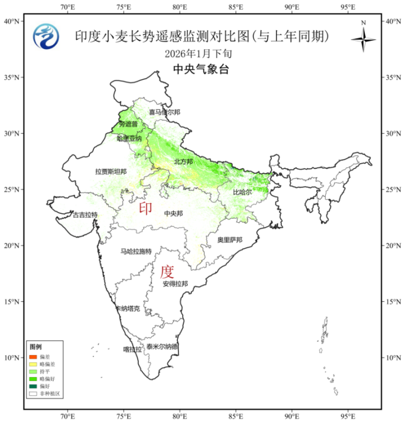 图25 2026年1月下旬印度小麦长势遥感监测