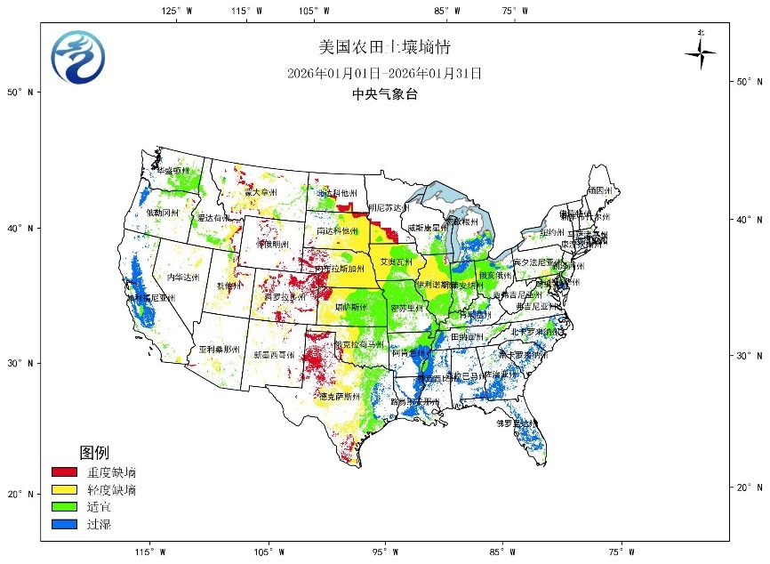 图3 2026年1月美国土壤墒情