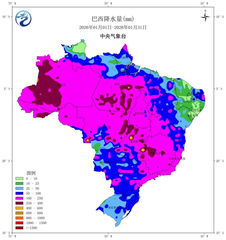 图6 2026年1月巴西降水量