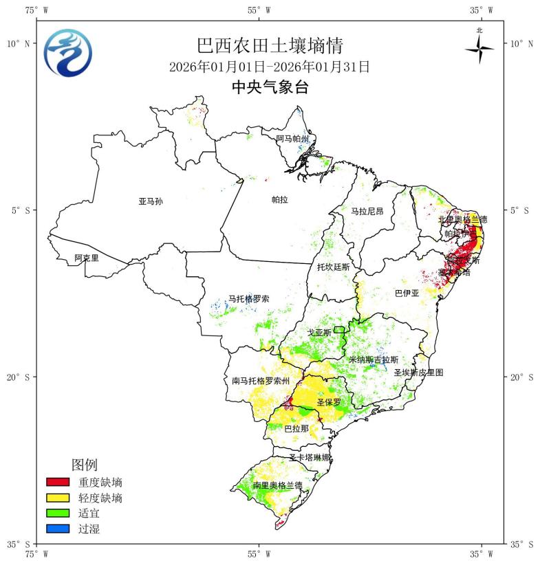 图7 2026年1月巴西土壤墒情