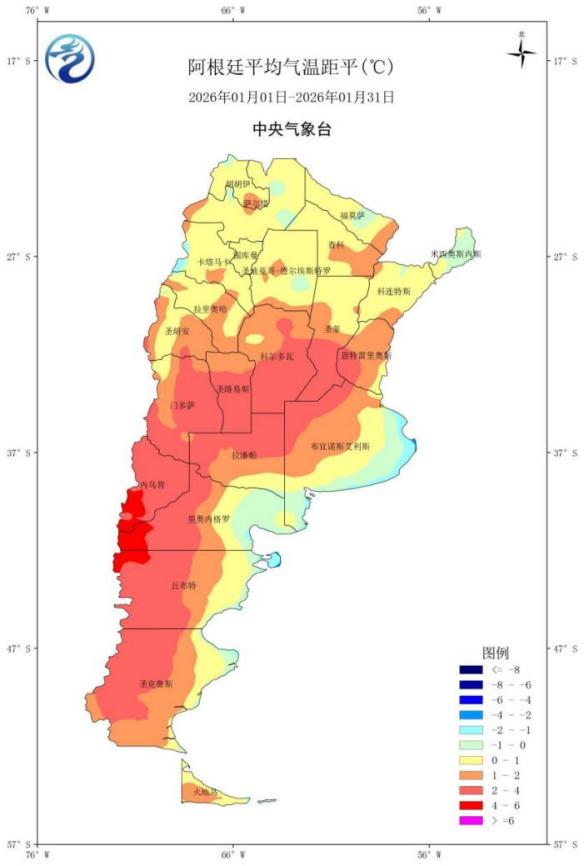 图8 2026年1月阿根廷平均气温距平