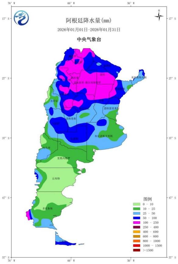 图9 2026年1月阿根廷降水量