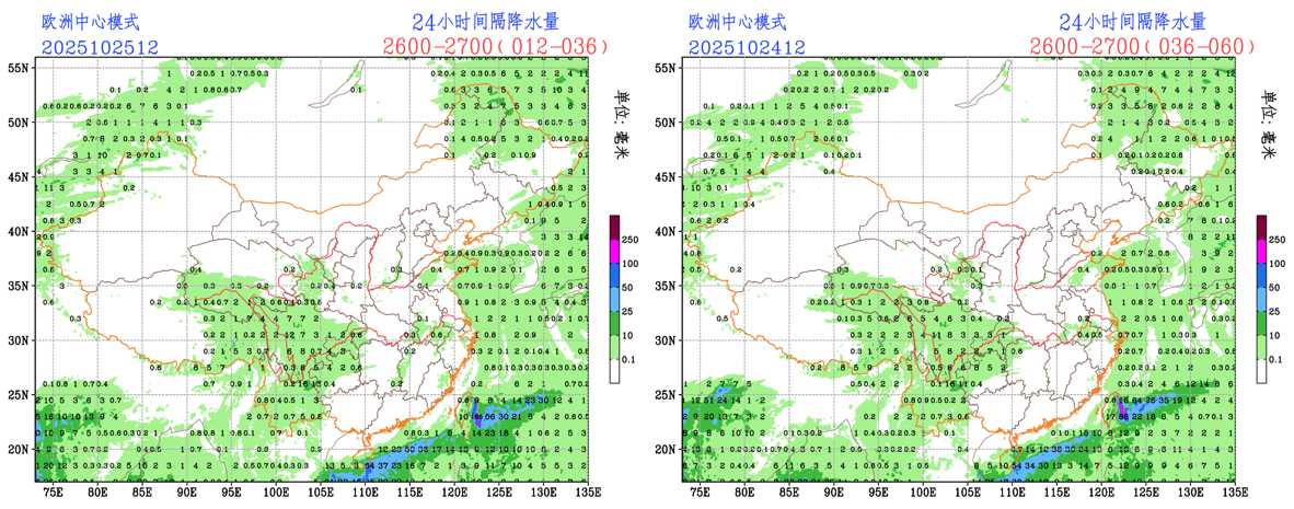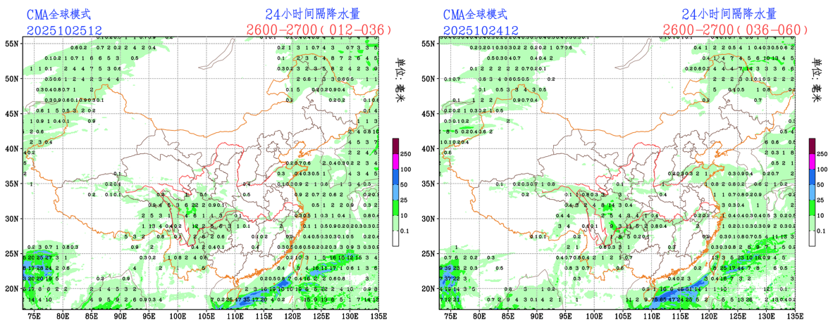 未来24小时,各家模式对于降水落区及量级的预报调整不大,预报员可参考模式结果进行必要订正。