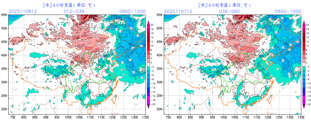 11月9日至10日,冷空气继续影响我国中东部地区。内蒙古中东部、东北地区、华北北部和东部、黄淮东部等地有4~6级风,阵风7~8级;上述地区气温下降4~6℃,局地降温8℃以上。