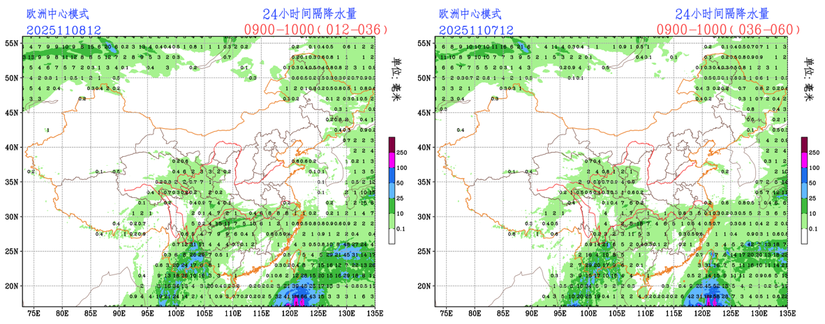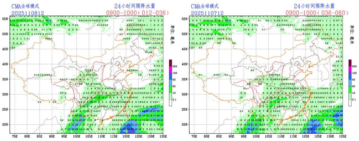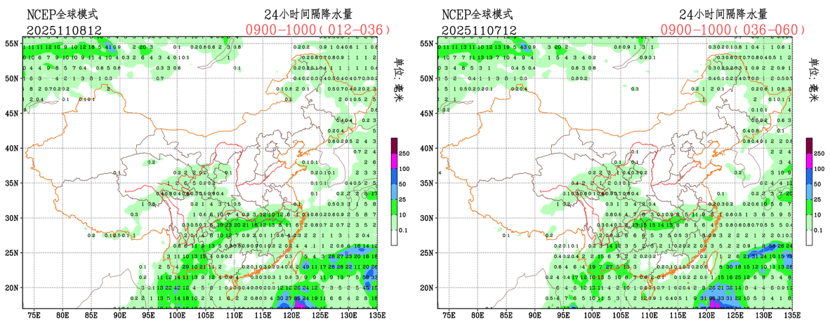 未来24小时,EC模式对贵州北部至湖南西北部的降水雨带略有调大,此外EC模式对云南东部大雨量级的降水略有调小,调整至中雨量级。NCEP模式对西南地区东部至江南一带的降水雨带略有调整,调整至云南东部至江南西部,其中云南东部的降水由小雨量级调整至中雨量级。CMA模式对云南东北部的降水量级有所调大,从小雨量级调整为大雨量级。整体来看,不同数值预报模式对云南东部地区的降水预报存在不确定性,预报员需结合模式结果进行必要订正。