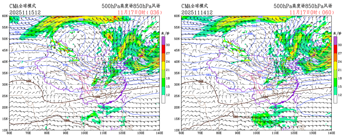 受寒潮影响,预计11月16日至18日,我国中东部地区自北向南将出现大风降温天气,日平均或最低气温普遍下降6~10℃,陕西南部、重庆北部、河南西部、湖北北部等地下降12~14℃,局地降温可超过14℃。上述地区有4~6级、阵风7~8级偏北风,东部和南部海区先后有6~8级、阵风9~10级大风;11月18日前后,最低温度0℃线将南压到苏皖南部至湖北北部一带。