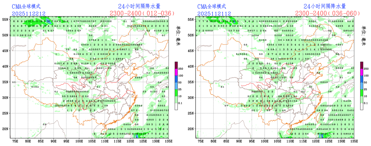 未来24小时,CMA-GFS模式对西藏西部降水量级有所调大,NCEP对四川西部降水量级有所调大,EC模式降水落区预报调整较小。预报员可参考模式订正预报结果。