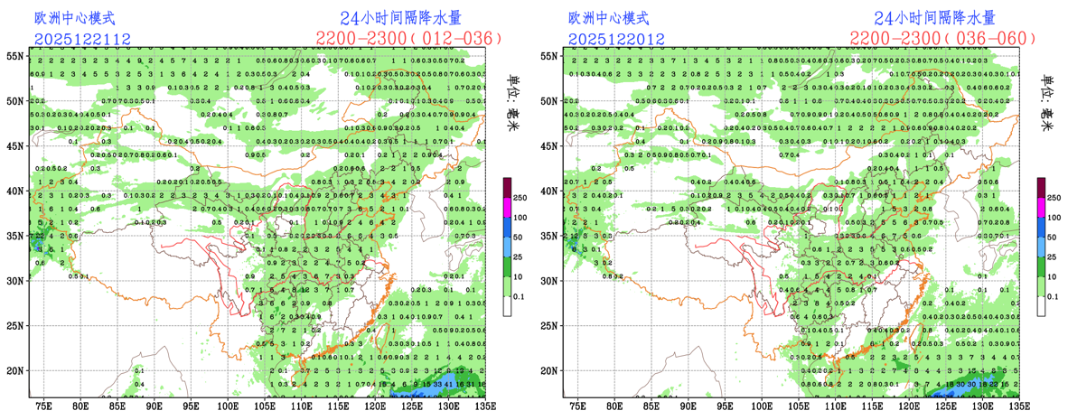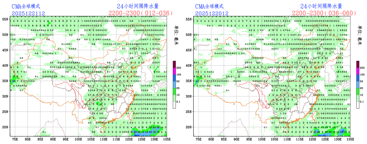 未来24小时,EC模式和CMA模式调大了贵州东部和湖南西部的降水量级,调小了华北部分地区的降水量级;NCEP模式调大了山东中部地区的降水量级。预报员可参考模式结果订正预报。