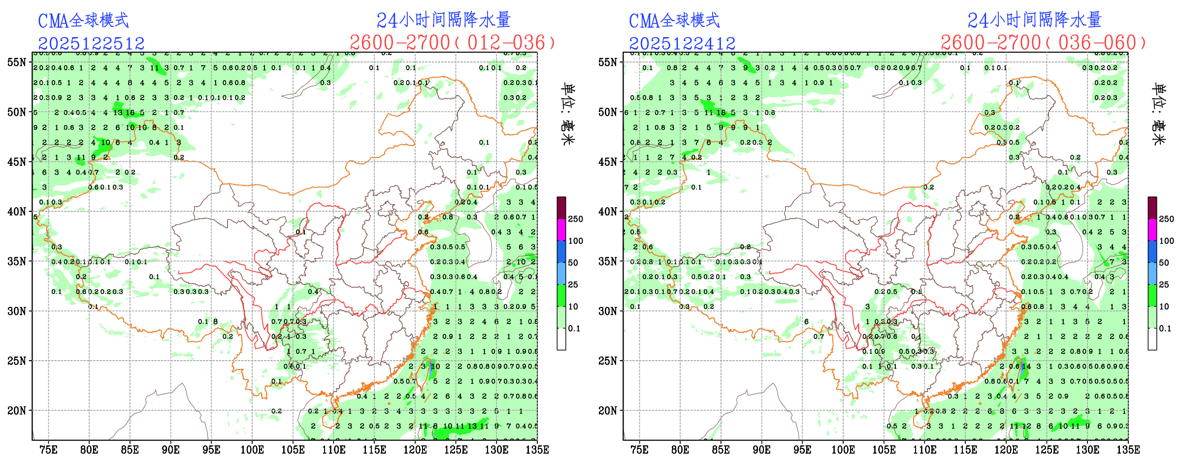 未来24小时,模式对全国降水落区和量级调整较小。预报员可参考模式结果订正预报。