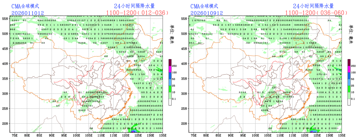 未来24小时,EC模式、CMA-GFS和NCEP模式预报的整体稳定性较好,预报员可参考模式预报结果进行预报订正。