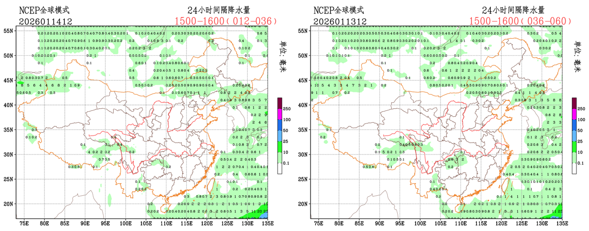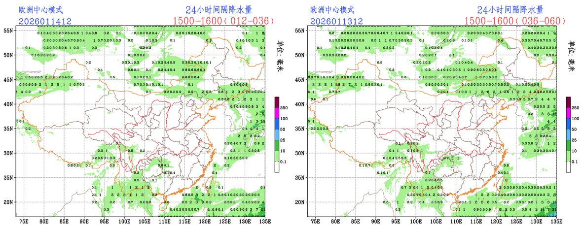过去24小时,预报员对小雨量级降水预报TS评分均高于EC模式和CMA-GFS模式;预报员对内蒙古东南部、河北北部、西南地区东部的降水存在漏报;EC模式对河北北部、西南地区东部的降水存在漏报,对西藏东部的降水存在空报;CMA模式对内蒙古东南部、河北北部、西南地区东部的降水存在漏报,,对西藏东部的降水存在空报。