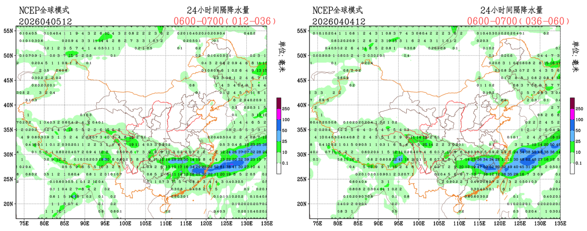 未来24小时,EC模式对降水落区和量级调整较小,CMA-GFS模式对江南地区降水量级有所调大,NCEP模式对大雨落区有所调整,增加对湖北北部和江西西北部出现大雨落区的考虑。预报员可参考模式结果进行必要订正。