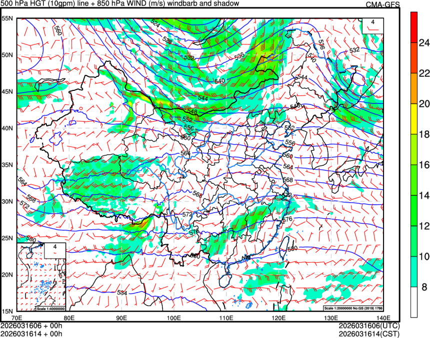 500hPa高度场+850hPa风场