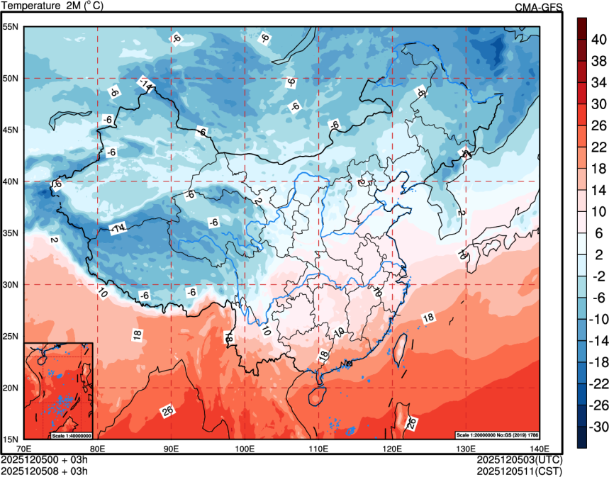 500hPa高度场+850hPa风场