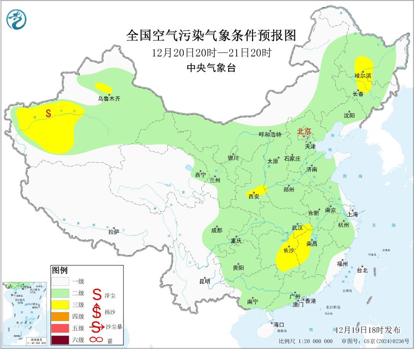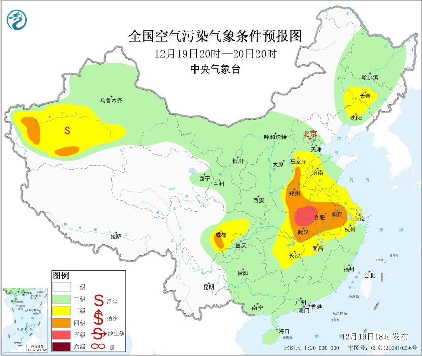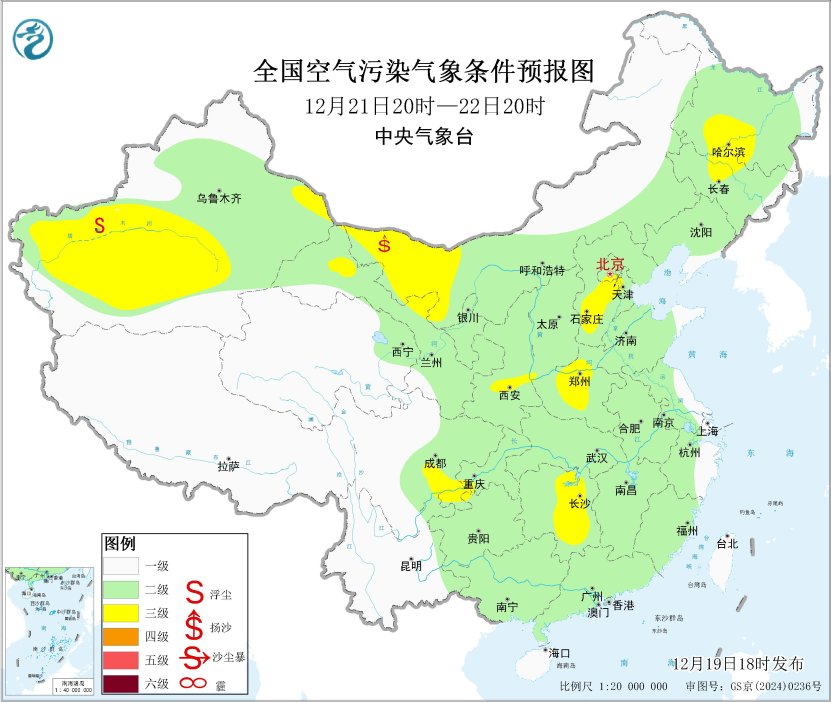19日夜间至20日,华北南部、黄淮、江淮、江汉、江南北部等地的霾天气自北向南逐渐减弱消散。21日至25日,全国大部大气扩散条件较好,无大范围霾天气过程。