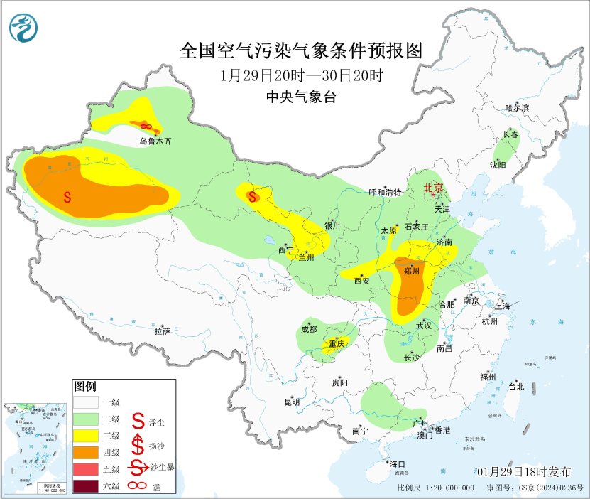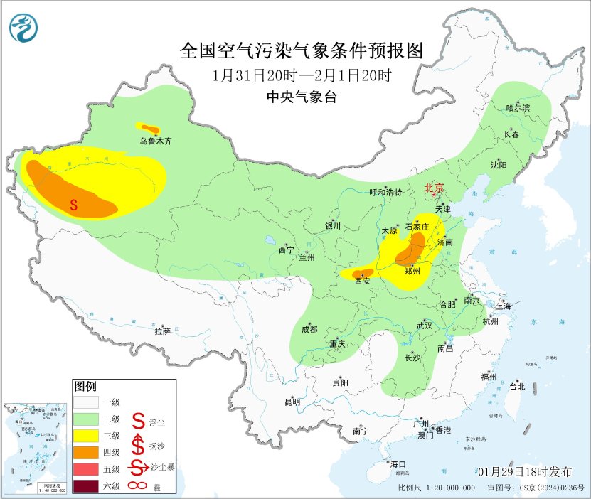 29日起,受冷空气和降水共同影响,霾天气逐渐减弱消散。2月1日起,区域大气扩散条件逐渐转差,有轻至中度霾。