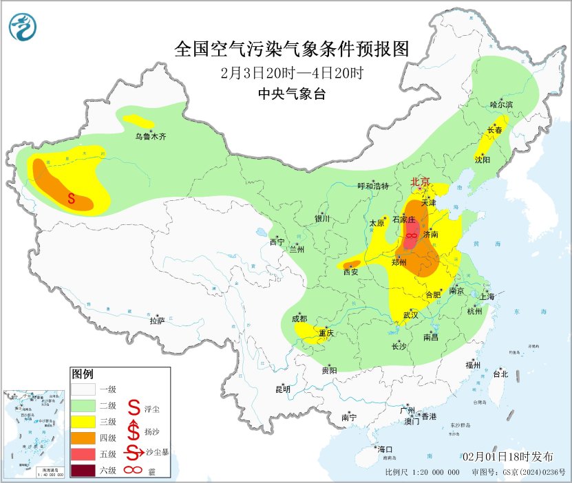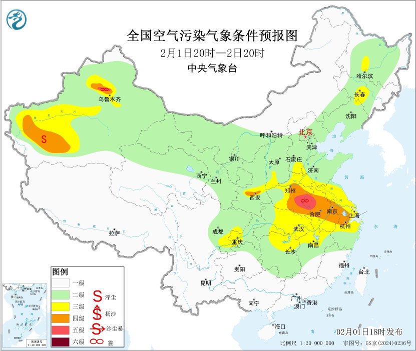 1日夜间至4日,华北南部、黄淮中西部、江淮中西部、江汉等地的部分地区有轻至中度霾,局地重度霾。5日起,受冷空气影响,上述地区霾天气自北向南逐渐减弱消散。