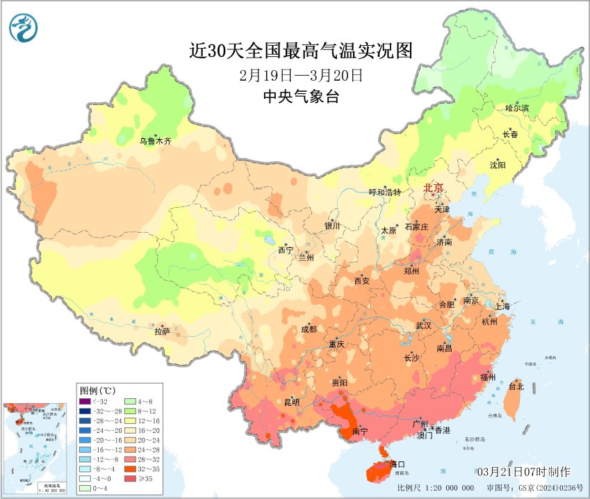 近30天全国最高气温实况图