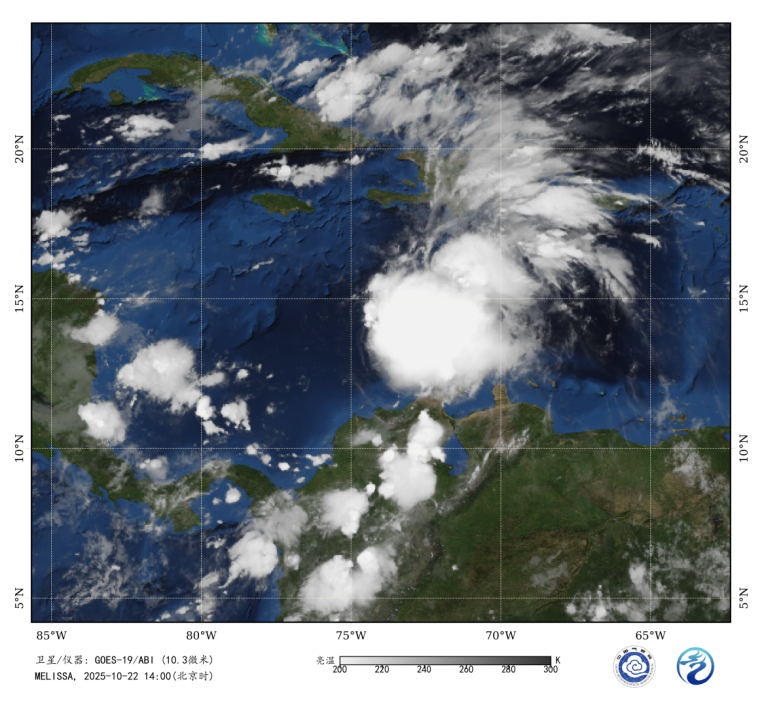 图1 卫星红外监测图像(北京时间2025年10月22日14时00分)