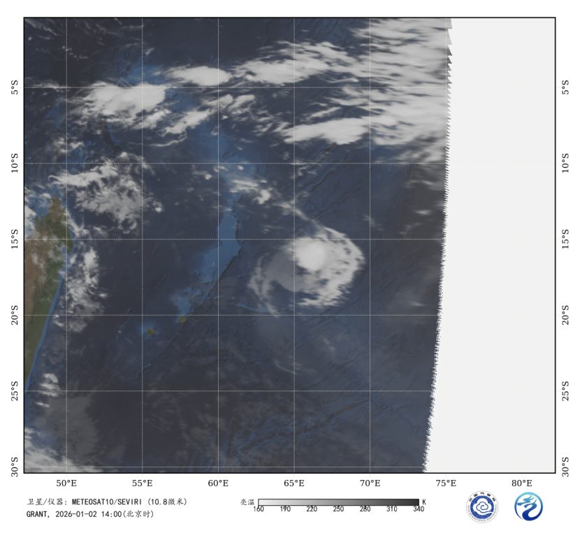图2 卫星红外监测图像(北京时间2026年1月2日14时00分)