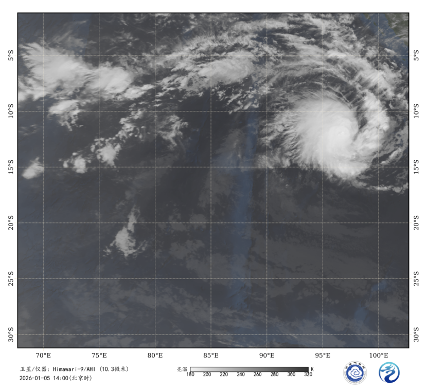 图1 卫星红外监测图像(北京时间2026年1月7日14时00分)