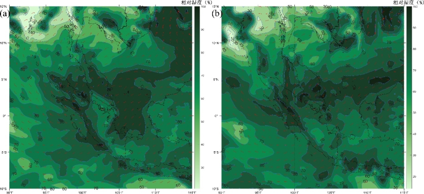 受"森亚尔"影响,泰国中南部、马来半岛以及印度尼西亚苏门答腊岛出现持续性强降雨和强风天气。从11月27日850hPa风场和相对湿度场(图5a和5b)可以看到,“森亚尔”东侧形成一条从安达曼经过马来半岛直到泰国南部的水汽通道,相对湿度普遍超过85%,部分地区达到95~100%,泰国宋卡府上空表现为气旋性环流,宋卡府单日降雨量达335毫米,创下该地区至少300年来最高纪录,部分地区洪水深度达2米;苏门答腊岛北部和西部多地出现超过100毫米的强降雨,北部部分山区降雨量超过250毫米(图5c)。