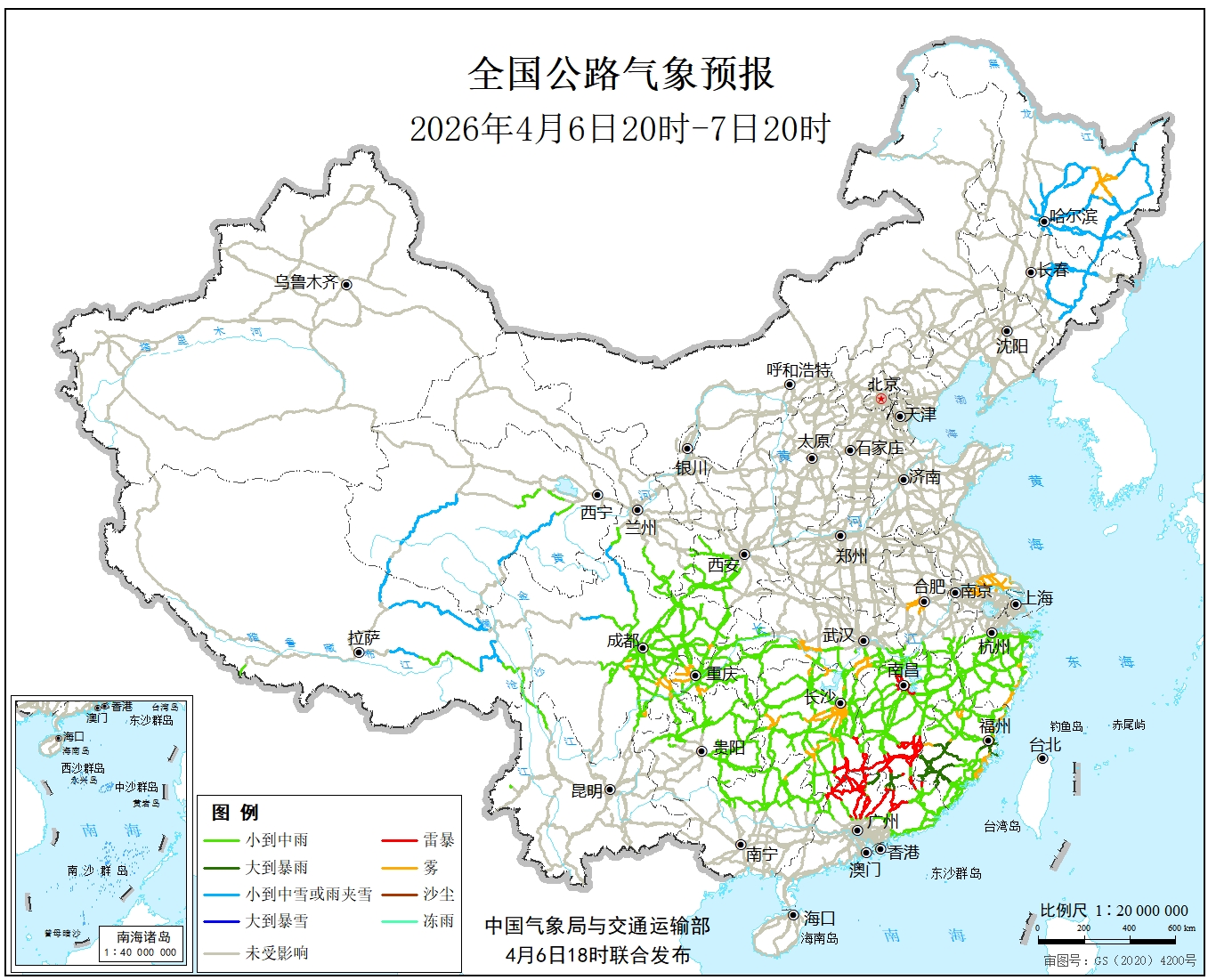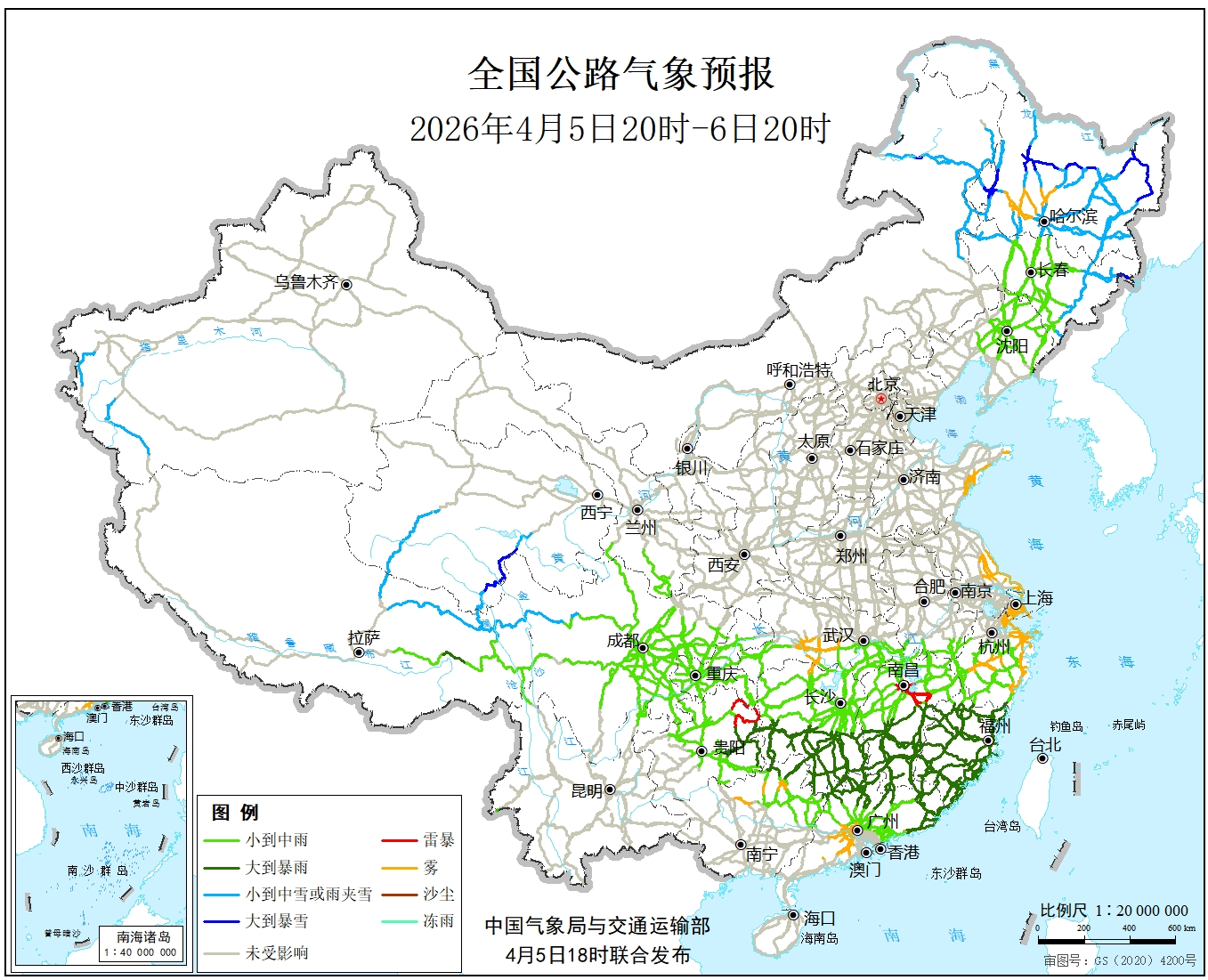 中国气象局与交通运输部2026年04月05日联合发布全国主要公路气象预报