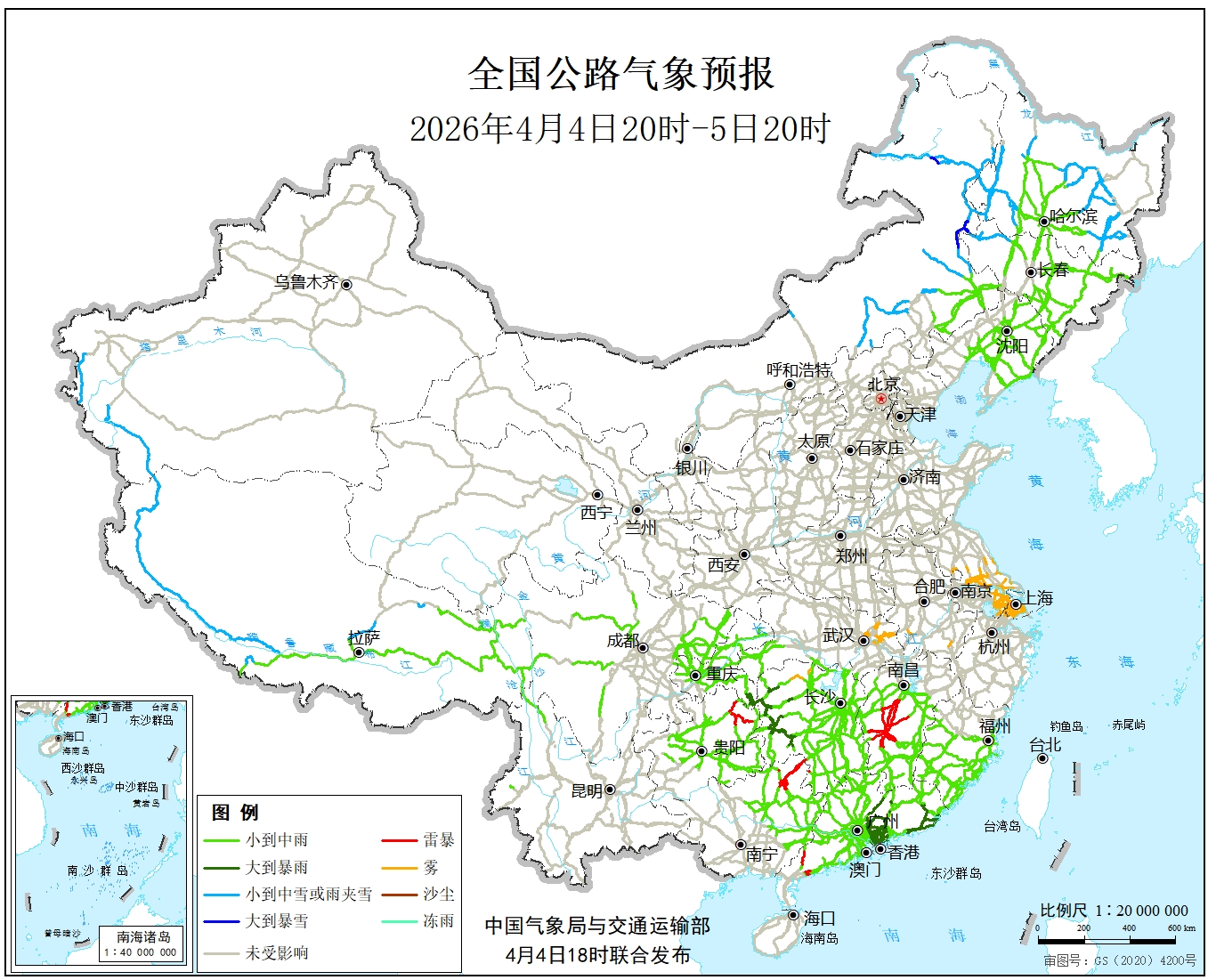 中国气象局与交通运输部2026年04月04日联合发布全国主要公路气象预报
